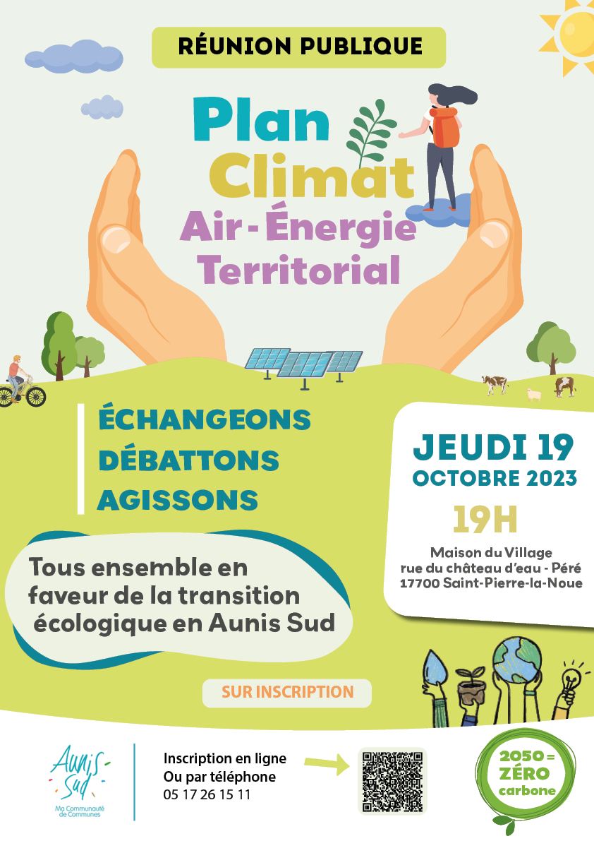 La Communauté de communes Aunis Sud organise ce soir une réunion publique dans le cadre de la co-construction de son Plan Climat Air Énergie Territorial. Un document qui mobilise l’ensemble des acteurs du territoire, entreprises, associations et habitants, pour mettre en cohérence des réponses locales avec les enjeux de la transition écologique et atteindre l’objectif de zéro carbone net sur le territoire à l’horizon 2050. Rendez-vous est donné à 19h à la Maison du village de Saint-Pierre-la-Noue, près de Surgères.
