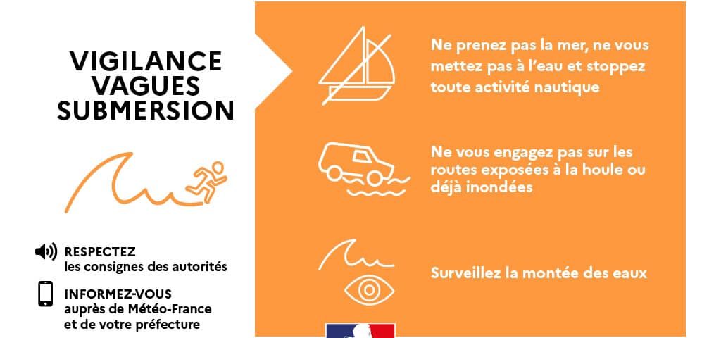 fortes vagues et un fort vent de Sud-Ouest en rafales, pourrait engendrer des submersions localisées sur