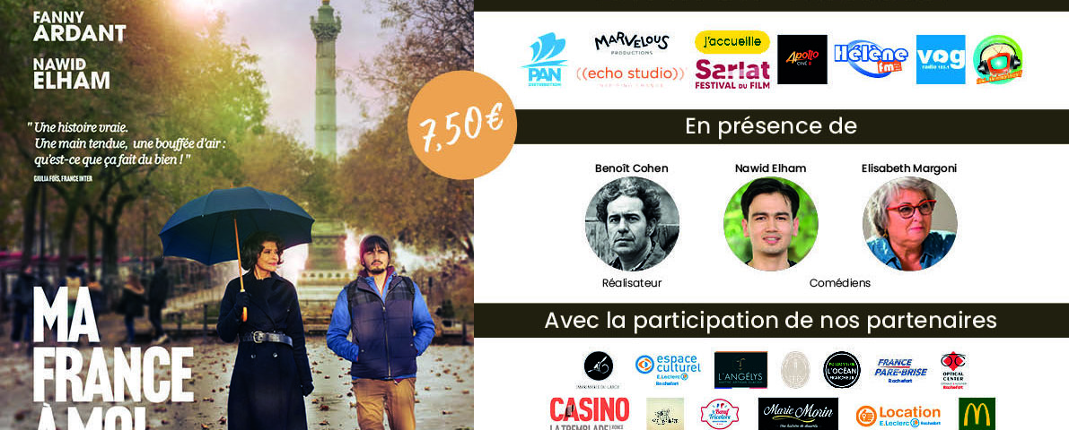 Évènement ce dimanche avec l’avant-première du film « Ma France à moi » avec Fanny Ardant. HÉLÈNE FM, VOG RADIO et l’émission « Chut… on écoute la télé » vous proposent quatre séances en Charente-Maritime : à 13h45 au CGR Dragon de La Rochelle, à 16h à l’Appolo ciné 8 de Rochefort, à 17h45 à l’Atlantic ciné de Saintes, et 20h30 au Lido de Royan. Une partie de l’équipe du film sera présente : le réalisateur Benoît Cohen et les comédiens Nawid Elham et Élisabeth Margoni.