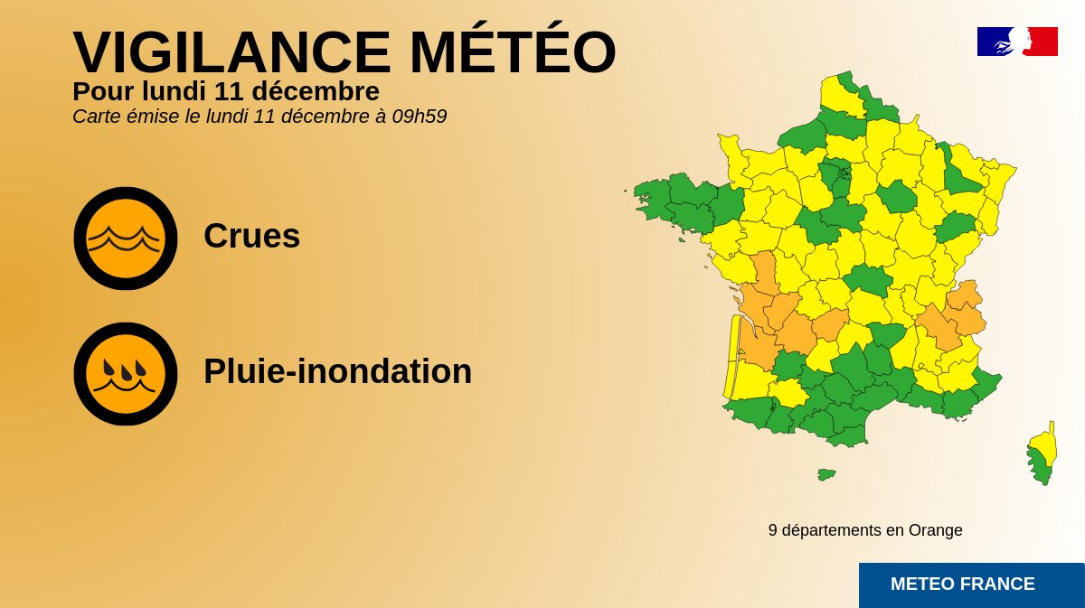 La Charente-Maritime est placée en vigilance orange pour le phénomène de crues. Des crues importantes concernant le tronçon de la Dronne aval, dans le sud du département. Les précipitations qui ont touché ces derniers jours le bassin versant du cours d’eau ont provoqué des débordements modérés. Le préfet du département Brice Blondel appelle à la plus grande vigilance dans les communes de La Barde et Saint-Aigulin qui sont concernées par des risques de débordement. Les sols gorgés d’eau n’arrivent plus à absorber les quantités de pluies importantes. Hier soir, 24 routes départementales ont été fermées à la circulation en raison des inondations.