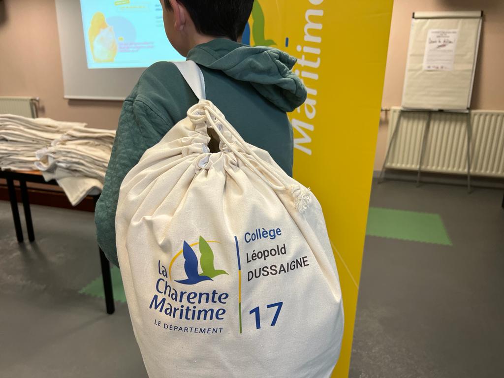 La Charente-Maritime encourage les collégiens de 6e à la pratique sportive. Ce jeudi, le Département leur a offert un sac de sport éco-responsable aux couleurs de la collectivité, dans le cadre de son Plan jeunesse dédié aux 9-29 ans. La remise a eu lieu au collège Léopold-Dussaigne de Jonzac où 106 premiers élèves ont reçu leur sac. Au total, 7 815 collégiens en seront dotés d’ici la fin du mois.