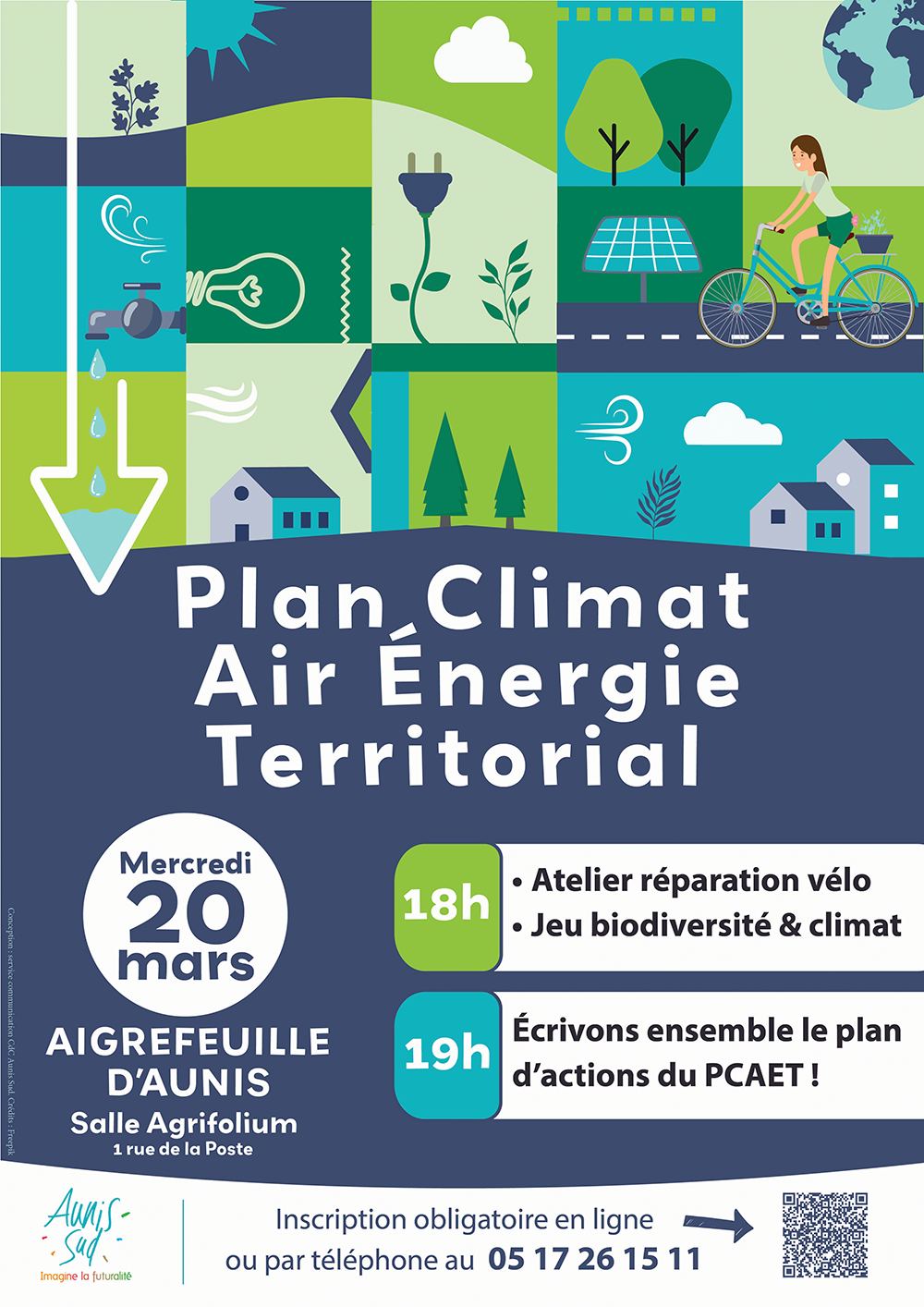 Une réunion de co-construction du Plan Climat de la Communauté de communes Aunis Sud a lieu ce soir à Aigrefeuille-d’Aunis. Après des premiers travaux lancés en 2017 et 2018, la CdC a relancé en 2023 l’élaboration de son Plan Climat Air Énergie Territorial. Un document qui vise à donner et à mettre en cohérence des réponses locales aux enjeux de la transition écologique. Le but étant d’arriver à l’objectif Zéro carbone net sur le territoire à l’horizon 2050. Pour en savoir plus, rendez-vous à 19h à la salle Agrifolium. Un atelier de réparation de vélos et des jeux sur la biodiversité et le climat sont proposés en amont à 18h. L’inscription est obligatoire au 05 17 26 15 11. Une seconde réunion est prévue le 11 avril à Surgères.