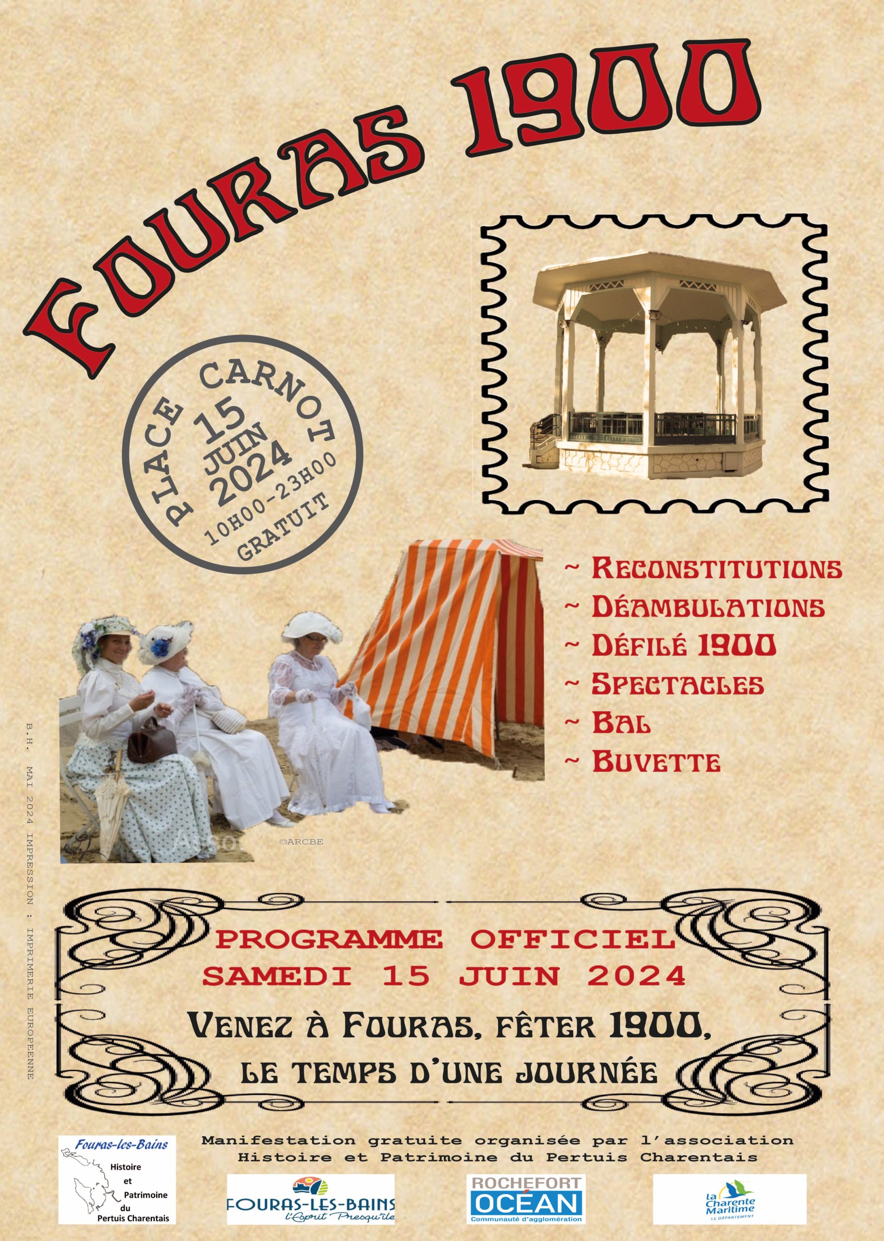 Samedi 15 juin, place Carnot à Fouras, venez découvrir « Fouras en 1900 ». Reconstitutions, spectacles, expositions, bal et défilé de mode vous plongeront dans l’Histoire. Manifestation gratuite de 10h00 à 23h00.