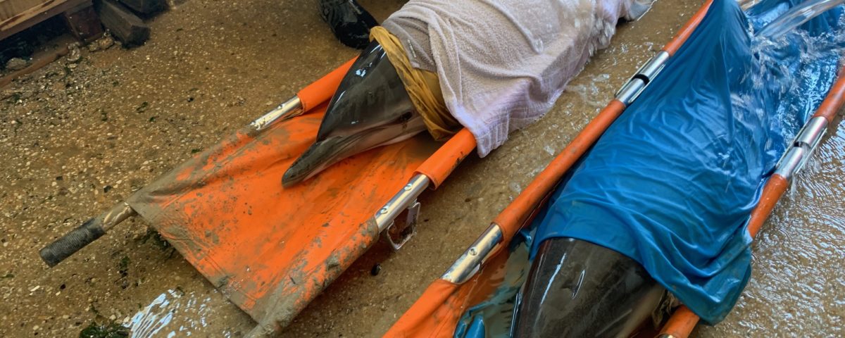Les dauphins ont été ramenés à terre sur des brancards. (photo CdC île d’Oléron)