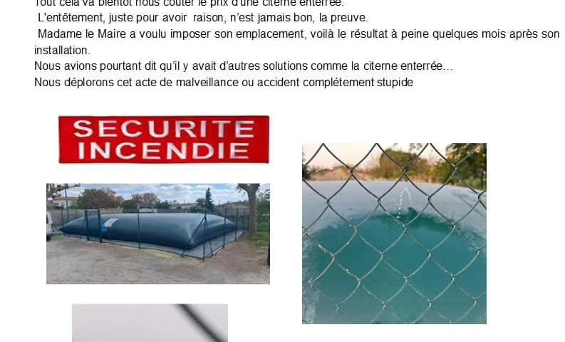 À Saint-Just-Luzac, près de Marennes-Hiers-Brouage, la citerne souple, qui trône depuis avril dernier, en plein centre-bourg place Jean-Hay, n’en finit plus de faire des remous. L’équipement, qui est censé être utilisé en cas d’incendie, présente déjà une fuite, quelques mois seulement après son installation. Celle-ci a bien été colmatée, mais avec du ruban adhésif qui ne tient pas. Acte de vandalisme ou accident lié à l’organisation d’une fête locale ? Le Collectif citoyen de Luzac, qui dénonce depuis plusieurs mois son emplacement, s’interroge et réclame à la municipalité des mesures immédiates. On écoute son président Jean-Luc Juillet :