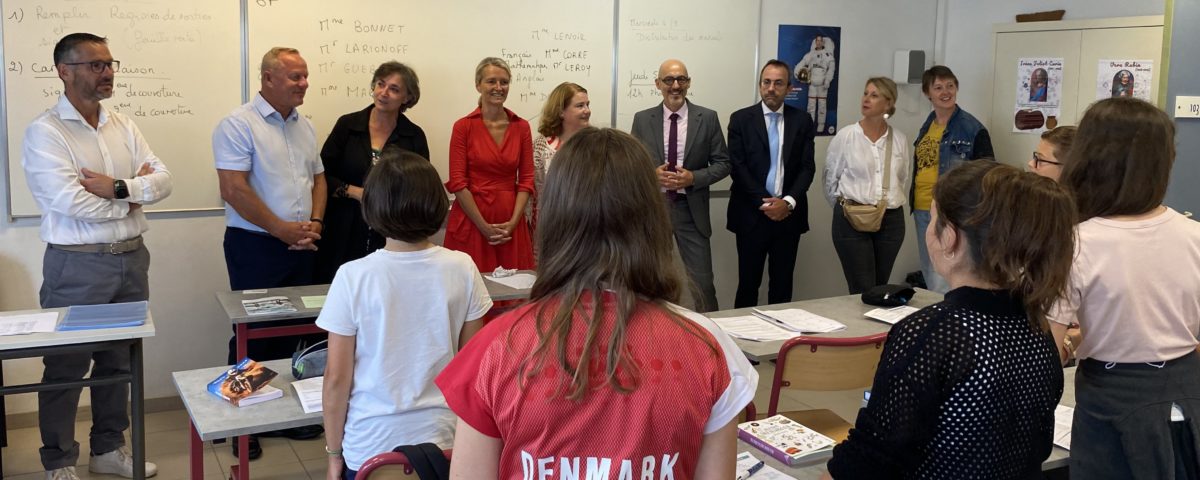 29 000 collégiens font leur rentrée en ce début de semaine en Charente-Maritime. À cette occasion, le Directeur académique de l’Éducation nationale Mahdi Tamene, Emmanuel Cayron, secrétaire général de la préfecture, Sylvie Marcilly, présidente du Département, et les élus locaux se sont rendus hier au collège André-Malraux de Châtelaillon-Plage pour assister à la rentrée des élèves de 6e. Un moment important pour le Département dont dépendent les collèges, à l’heure où une baisse des effectifs nécessite un redéploiement des moyens pour les années à venir.