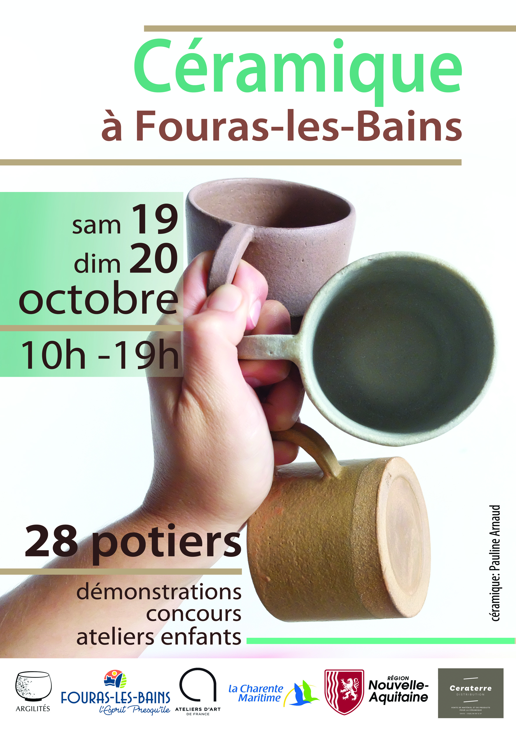 L’association Argilités vous invite à « Céramique à Fouras » samedi 19 et dimanche 20 octobre, place centrale, près de l’église, de 10h à 19h. Cette édition accueille 28 exposants et propose quatre animations. Une démonstration de tournage, un atelier modelage enfant, une démonstration de raku et un concours avec vote.