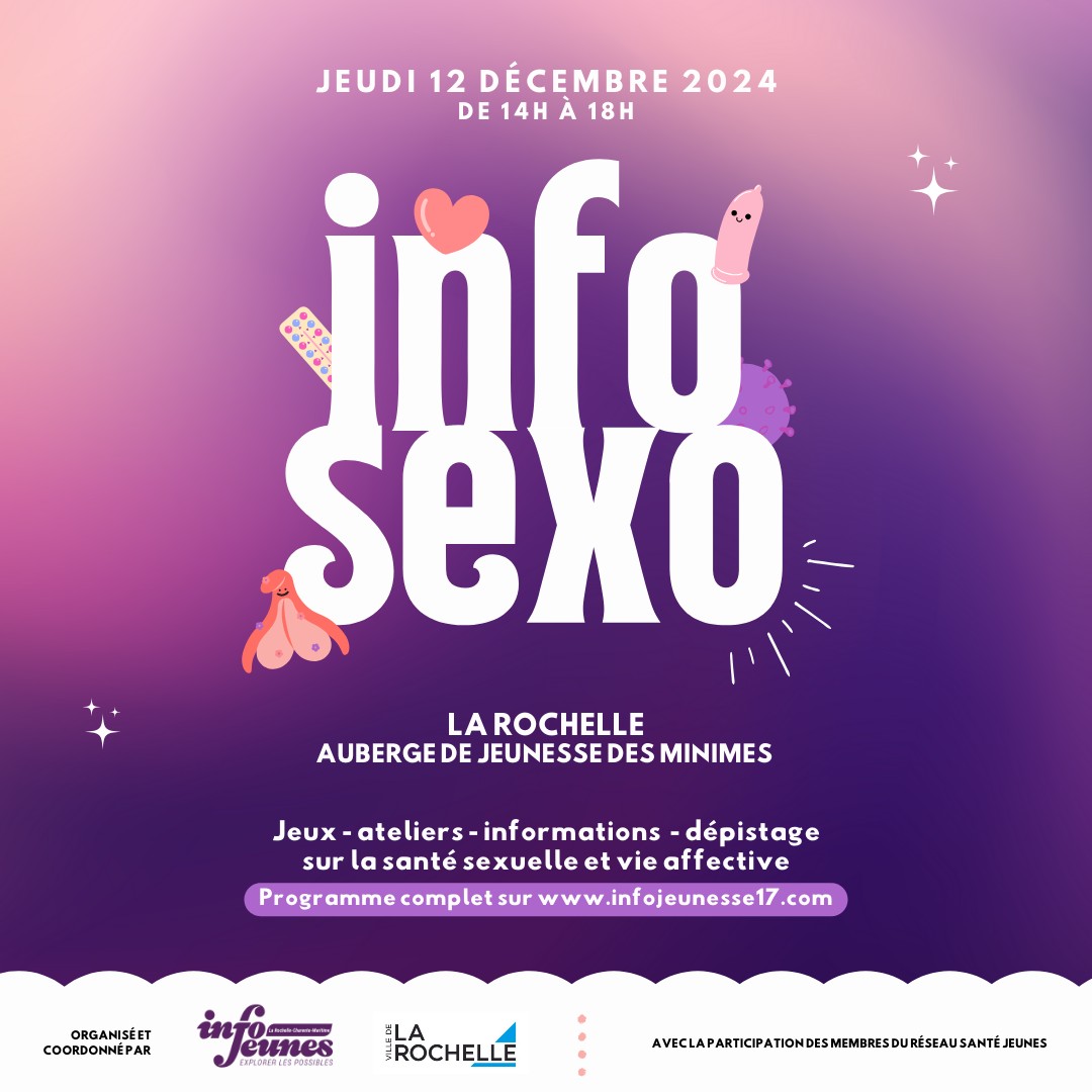 Le Département de la Charente-Maritime organise cet après-midi l’évènement « Info sexo », dédié aux adolescents autour de la vie affective et de la santé sexuelle. L’occasion d’aborder différentes thématiques comme les relations, la contraception ou les Infections sexuellement transmissibles autour de jeux, d’escape game, de stands d’information et de vidéo-débats. Rendez-vous de 14h à 18h à l’Auberge de jeunesse des Minimes à La Rochelle.