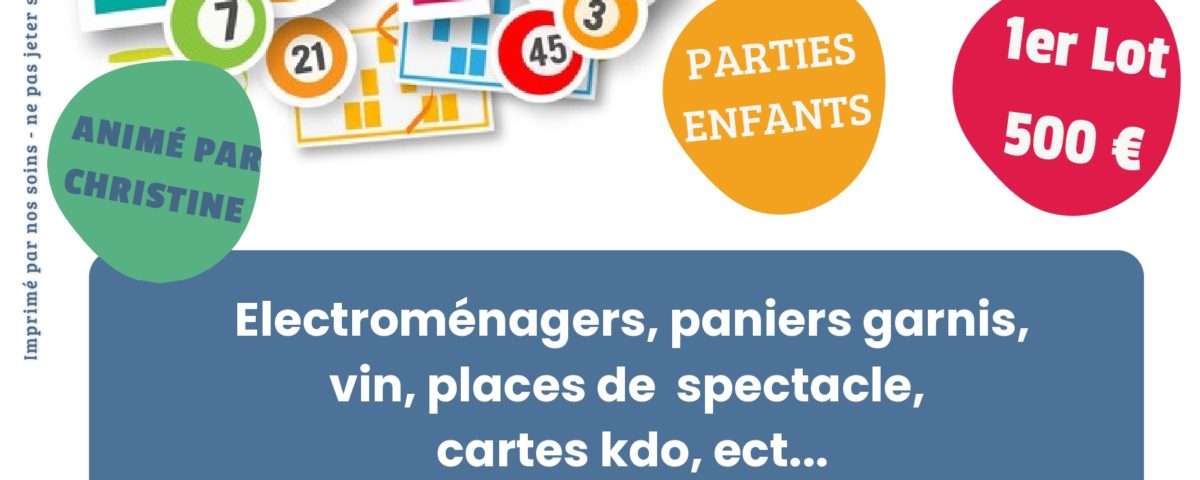 À Saint-Georges-du-Bois, l’association humanitaire Les Capiz’elles organise un loto vendredi 24 janvier, dans la grande salle des fêtes, à 20h30, en faveur de l’action solidaire pour les enfants. Il sera animé par Christine. À gagner, de nombreux lots dont le 1er lot à 500€, des cartes cadeaux, électroménagers, paniers garnis, places de spectacle. 2€ le carton, 10€ les 6 et 20€ les 12. Formule à partir de 20€. Partie spéciale à 3€ le carton. Bingo à 2€ et 5€ les 3. Parties enfants. Tombola. Sur place restauration et buvette. Renseignements et réservations au 07 68 28 98 42. Ouverture des portes à 19h.