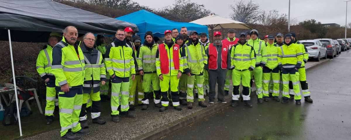 À Surgères, une quarantaine d’agents du syndicat mixte Cyclad sont mobilisés depuis 5h ce matin devant le Centre de transfert des déchets, situé dans la zone industrielle Ouest. C’est là qu’ils ont installé leur piquet de grève avec barbecue, boissons chaudes et tivoli. À l’appel du syndicat Force ouvrière, ils viennent d’entamer leur mouvement qui se veut à durée indéterminée, afin de réclamer de meilleures conditions de travail et de rémunération. Nous avons rencontré sur place Bruno Rousseau, secrétaire général FO Cyclad :