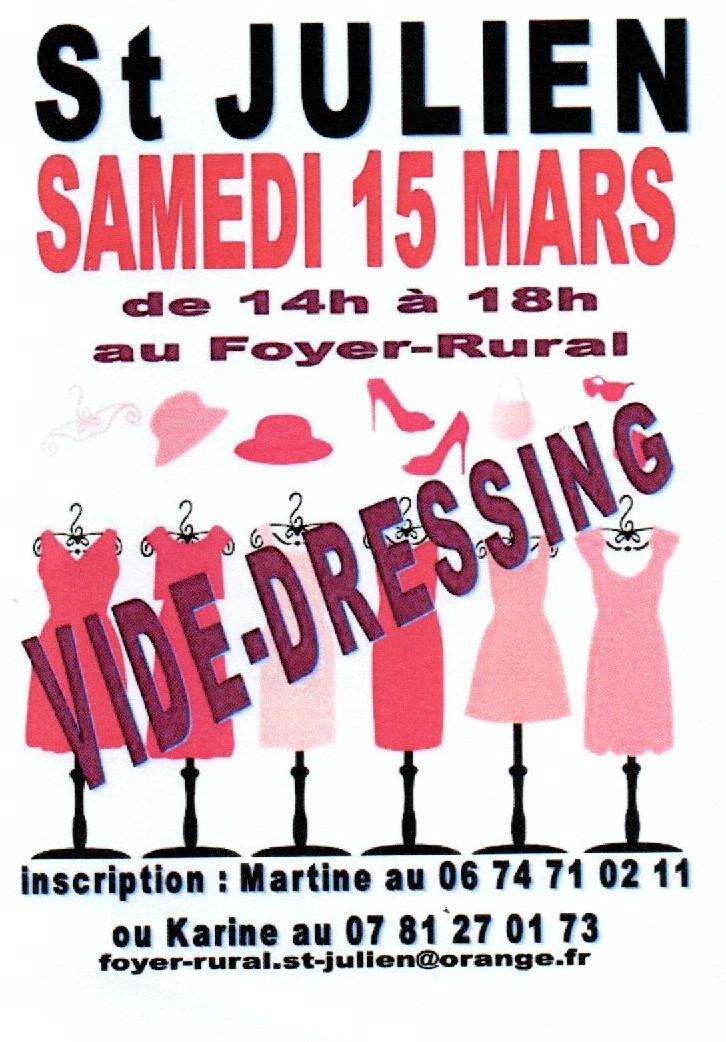 À Saint-Julien-de-L’Escap, le Foyer rural organise un vide-dressing samedi 15 mars, de 14h à 18h, au Foyer rural. Renseignements et inscriptions au 06 74 71 02 11 ou au 07 81 27 01 73 et par mail à foyer-rural.st-julien@orange.fr.