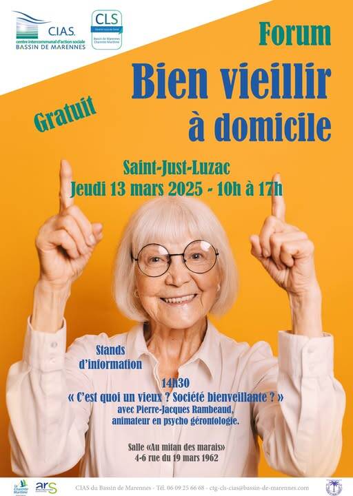 Saint-Just-Luzac accueillera la 2e édition du Forum du bien vieillir à domicile le 13 mars prochain. Un évènement organisé par le Centre intercommunal d’action sociale du Bassin de Marennes, en partenariat avec le Département de la Charente-Maritime. Une vingtaine de structures spécialisées dans de nombreux domaines seront présentes, afin d’informer le public sur les aides, les équipements et les services pour continuer à vivre le plus longtemps possible chez soi.