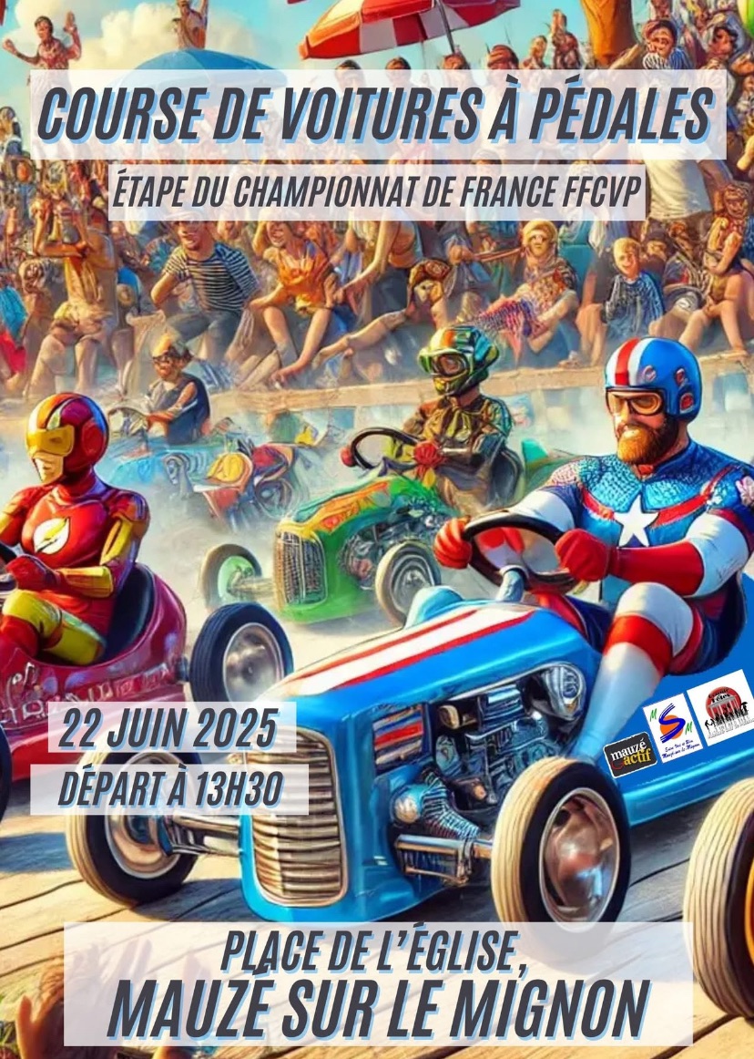 Le 22 juin, Mauzé-sur-le-Mignon accueille pour la 1ère fois une étape du Championnat de France de voitures à pédales. Ambiance survoltée, bolides délirants, pilotes déguisés… un show unique à ne pas manquer. Départ à 13h30.