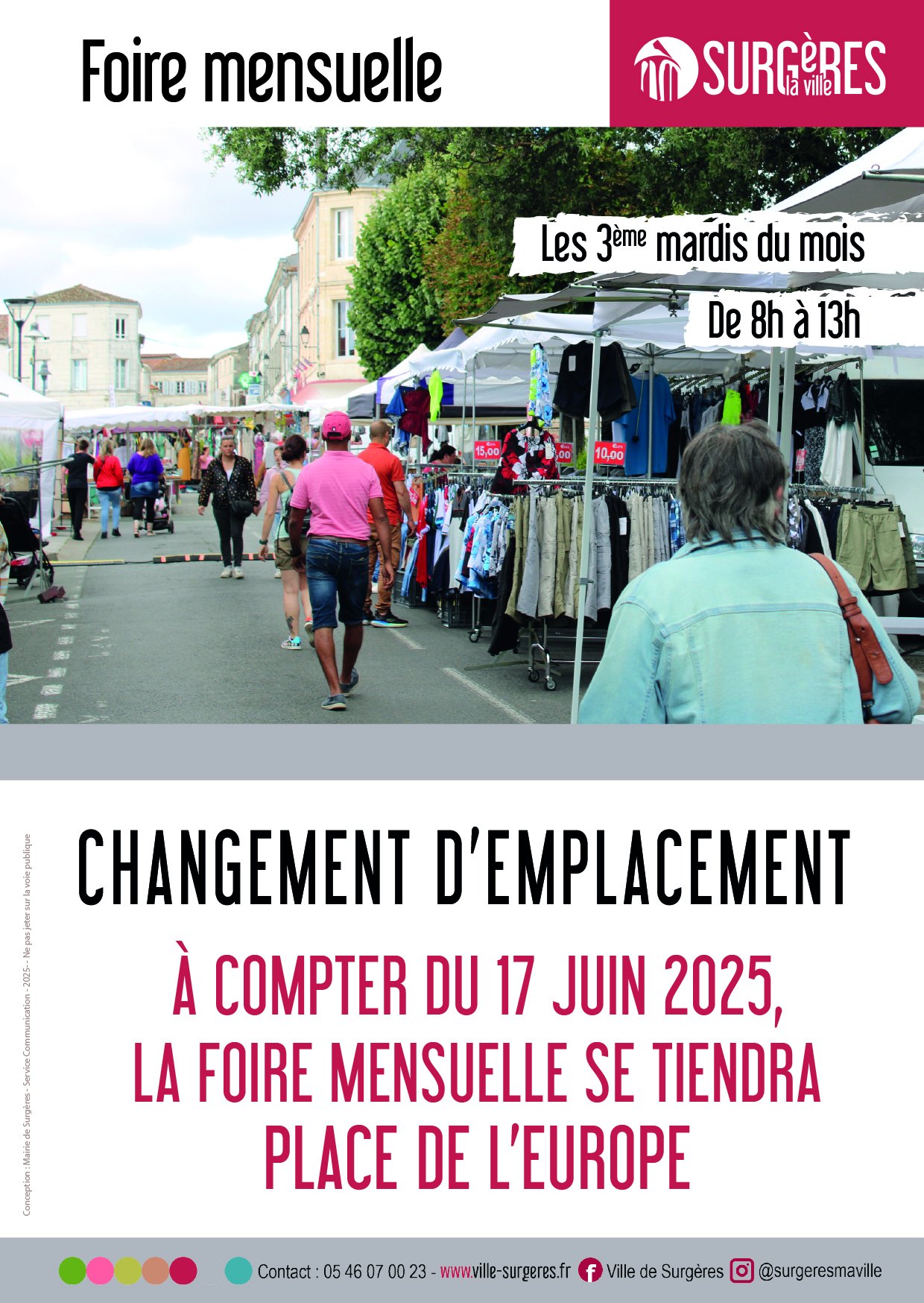 À Surgères, la Foire mensuelle s’installe aujourd’hui place de l’Europe. Exit l’avenue de la Libération qui est rendue à la circulation. Désormais, la foire prend ses quartiers tous les 3e mardis du mois en plein cœur de ville. Voilà qui devrait dynamiser la place et les commerces alentour.