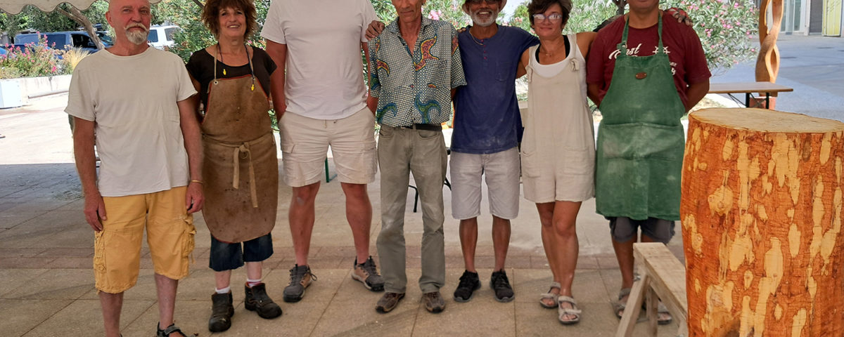 Les sept sculpteurs du Symposium 2025, dernière édition.