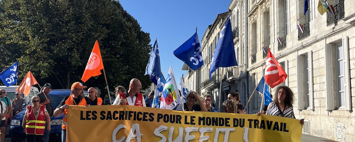 Forte mobilisation hier en Charente-Maritime pour la journée d’action interprofessionnelle contre la crise sociale et politique en France. 6 000 manifestants ont défilé dans le département selon les syndicats, moitié mois d’après les autorités. Dans le détail, ils étaient entre 1 800 et 3 000 à La Rochelle, un millier à Saintes, une centaine à Saint-Jean-d’Angély, 90 à Jonzac, et entre 1 100 à 1 800 à Rochefort. Rochefort où le cortège a exprimé sa colère en centre-ville. Tous les manifestants ont réclamé l’abandon du projet de budget de l’État et la démission du Président Emmanuel Macron, à l’image de Jean-Louis, venu de l’île d’Oléron :