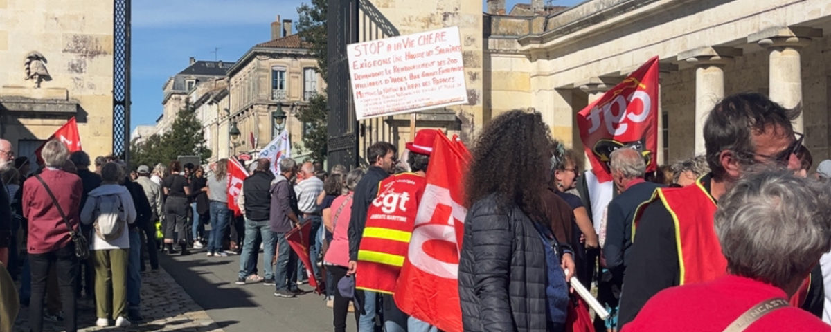 Mobilisation en baisse en Charente-Maritime. Hier, la nouvelle journée d’action interprofessionnelle contre le budget de l’État et l’injustice sociale a rassemblé moins de personnes dans le département que le 18 septembre dernier. Ils étaient 1 600 manifestants contre 6 000 deux semaines plus tôt. 700 l’après-midi à La Rochelle, 400 dans la matinée à Saintes, une trentaine à Saint-Jean-d’Angély, autant à Jonzac et environ 450 à Rochefort. Rochefort où le cortège a défilé en ville, bien décidé à maintenir la pression sur le chef de l’État, son Premier Ministre et le futur gouvernement, à l’image de Cécile They, aide-soignante à l’hôpital de Rochefort et membre du syndicat CFTC santé sociaux 17 :