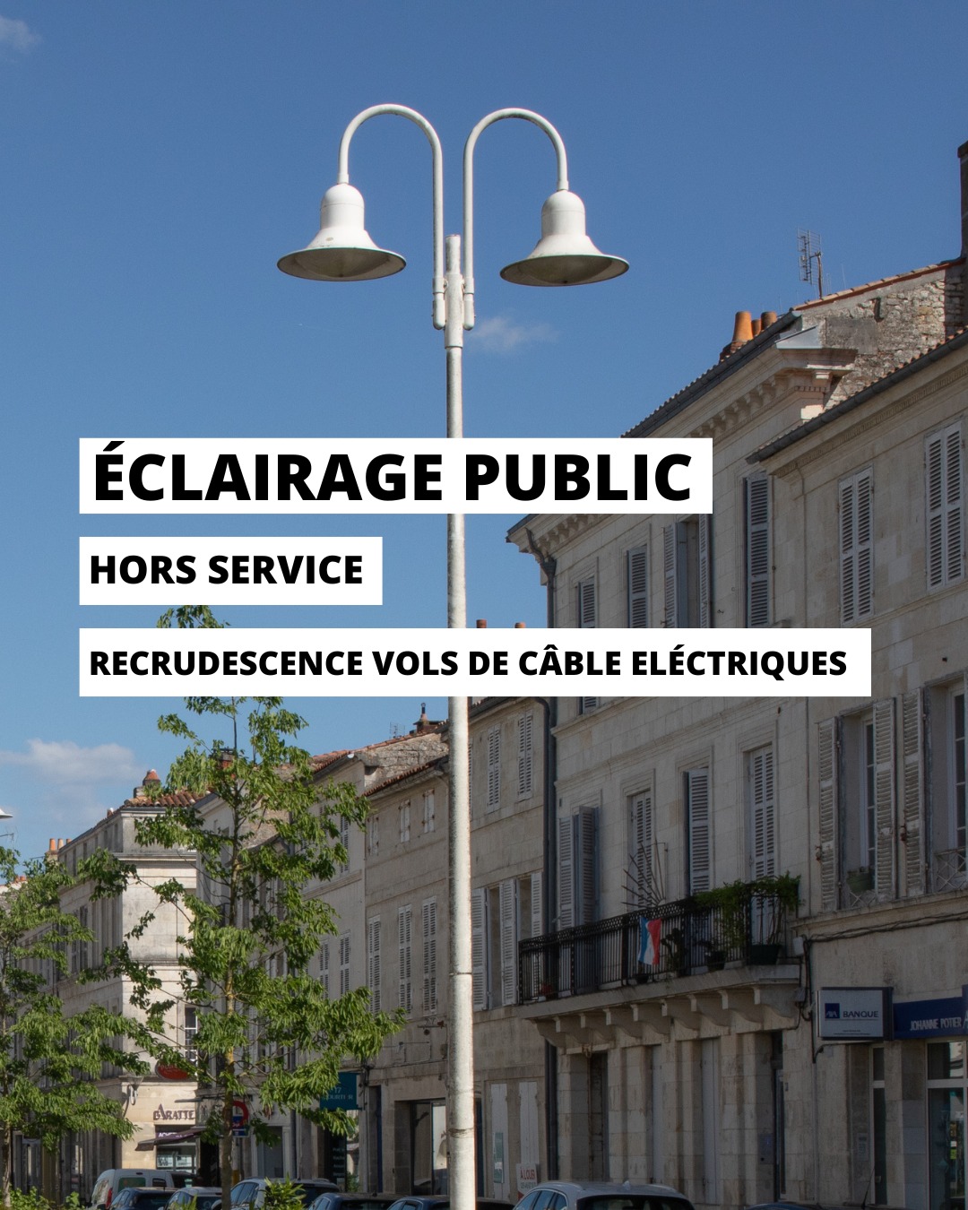Recrudescence de vols de câbles électriques à Rochefort. Depuis six mois environ, la ville fait face à une hausse de vols de câbles qui servent à alimenter l’éclairage public. Sur les 5 300 réverbères que compte la collectivité, plus de 70 ont fait l’objet de dégradations et de larcins la semaine dernière. Ces actes de malveillance ont été commis dans les secteurs des Chemins Blancs, des 4 Ânes, des rues Odette-Valence, des Droits de l’Homme et Saint-Sylvestre. Autant de secteurs qui se sont trouvés en partie privés d’éclairage public. Tout est mis en œuvre pour assurer une remise en état dans les meilleurs délais. En cas de présence d’un câble à terre ou de trappes ouvertes sur des candélabres, il faut garder ses distances et contacter les services municipaux.
