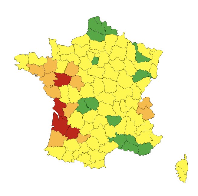 La Charente-Maritime est placée depuis hier après-midi en vigilance rouge crues pour le tronçon aval de la Charente. C’est le degré d’alerte maximal. Le niveau du fleuve continue de monter, notamment à Saintes où la situation reste critique. Il était à 6,31 m ce matin sous le pont Palissy, et devrait atteindre les 6,50 m demain, en raison des nouvelles pluies attendues aujourd’hui et des coefficients élevés de marée, avec un pic à 97 demain soir et vendredi matin. Sur place, l’inquiétude des habitants et des services de la Ville est forte. Plus de 900 maisons sont inondées. Les évacuations se poursuivent. Depuis hier, les sinistrés sans domicile ou ayant besoin d’aide sont accueillis au gymnase du Grand-Coudret. La situation est scrutée de près par le gouvernement, avec la venue ce matin du ministre délégué chargé de la Transition écologique Mathieu Lefèvre pour échanger avec les élus locaux, les services mobilisés et les habitants touchés par cet épisode de crue, et évoquer ensemble les dispositifs d’indemnisation.