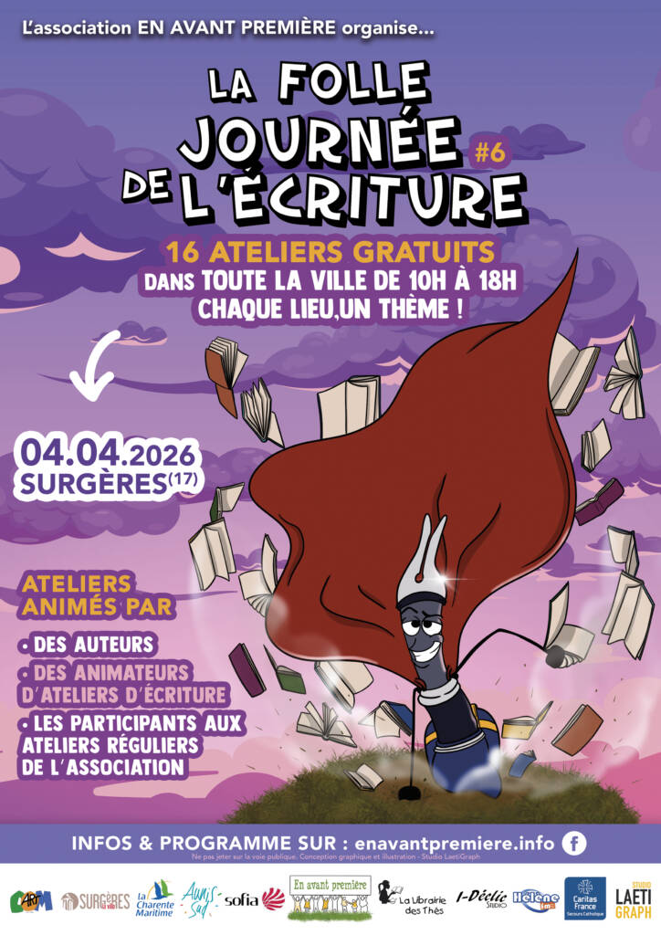 La Folle journée de l’écriture revient pour une 6e édition à Surgères. 16 ateliers gratuits seront animés dans toute la ville ce samedi, par des auteurs, des animateurs et des participants réguliers de l’association En avant première qui organise l’évènement. Une dizaine de lieux ont été identifiés pour aborder autant de thématiques, comme le souligne Véronique Amans de l’association :