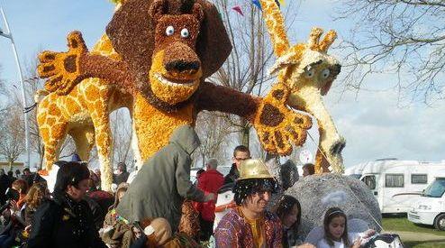 Dès 14h cavalcade avec chars fleuris, troupes déguisées, groupes folkloriques et bandas. Prestation de chaque groupe dans la salle des fêtes vers 16h30.