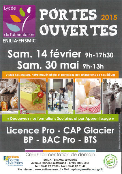 Journée portes ouvertes demain à l’Enilia-Ensmic de Surgères. Les deux écoles, spécialisées dans l’industrie laitière, agroalimentaire et de meunerie, seront ouvertes au public. Les futurs étudiants pourront y découvrir les formations classiques et par alternance proposées, qui vont du CAP à Bac+3 licence pro. RdV de 9h à 17h30. Interview avec le directeur Mahmed Faouri :