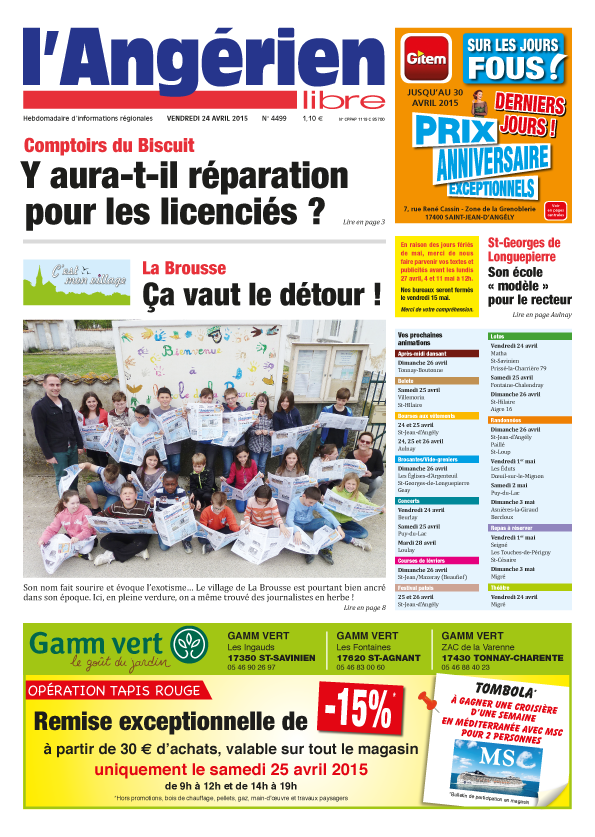 C’est la question que se pose l’Angérien libre cette semaine, après l’audience prud’homale lundi à Saintes au sujet des indemnités des salariés victimes de la fermeture de l’entreprise le 4 juillet 2013. Et puis l’hebdomadaire propose un zoom cette semaine sur le village de La Brousse, au Sud-Est de Saint-Jean-d’Angély, avec notamment deux articles signés par les élèves de l’école primaire. L’Angérien libre, disponible dès demain après-midi.