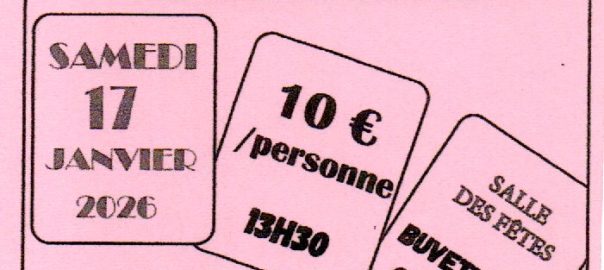 À Vandré, le Club de l’amitié organise un concours de belote samedi 17 janvier, à la salle des fêtes, à 13h30. 10€ par personne. De nombreux lots à gagner et tombola. SurLire la suite…