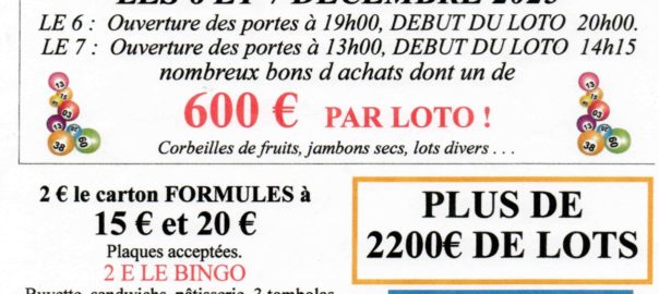 Bernay-Saint-Martin : deux lotos les 7 et 8 décembre à la salle des fêtes